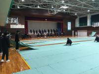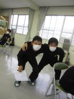 明後日の文化祭に向けて,3年生が会場にシートを並べました。一言,『甲斐性あるなぁ』。20名が指示を仰ぐことなくシートをきれいに並べていきます。保護者席の100余りの椅子を並べ終えるまで約15分,2年生の合唱練習と並行して準備していましたが,邪魔をすることなく静かに作業を完了していました。