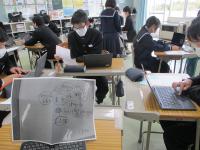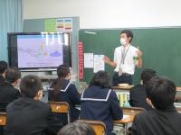 2年生総合的な学習の時間に,能登里海教育研究所の浦田博士研究員をお招きして『海洋ゴミ問題』について勉強をしました。最近よく耳にするマイクロプラスティックを始め,海洋ゴミがもたらす影響をまず考えました。しかし,プラスティックを使わないことも環境汚染につながるというお話を聞いて,自分たちが取るべき行動について考えを深めました。