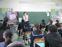 歯科衛生士の松原さんをお迎えして,2年生を対象に歯みがき教室を開催しました。虫歯予防が健康にもたらす恩恵やブラッシングの方法等についてお話しいただきました。後半は二手に分かれ,歯の染出しをして磨き残しがない歯みがきについて実習しました。