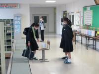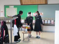 朝の登校時から「新しい生活様式」の徹底を図ることを目的として,保健生活委員会が,玄関先で手指消毒とマスク着用を呼びかけています(登校時は熱中症対策のため,マスクを外すことを可としています)。つい,うっかりという生徒も,委員会からの声掛けで気持ちを引き締めているようです。