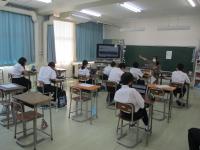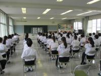 今回は,来週に修学旅行を控えた3年生が対象です。原田さんもその事情をご理解いただいており,修学旅行や入試にむけて,日頃の行動で気を付ける点について具体的にお話しと指導をしていただきました。話の内容にうなずいたり驚いたりする生徒や,積極的に質問する生徒など,表情豊かな一面を見せた3年生でした。