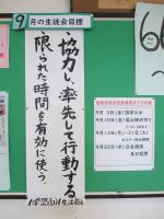 生徒会活動も日常的に行われています。9月初めに掲げられた今月の目標です。中旬の振り返りとして改めて見直しています。