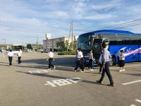 車から降りた後、横断歩道を渡ってください。朝夕は交通量が多く、車道を横断することは大変危険です。