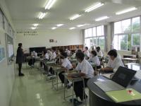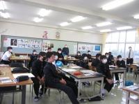 本日は音楽の先生が松波中に来てくれる日です。1年生は元気な歌声を学舎に響かせていました。『どんな表現で歌えばいいのかな』と次なる課題をもらっていました。午後は研究会開催のため1年生だけが残って5時間目に社会の授業をしました。お客様がたくさんいたためか,緊張した様子でした。