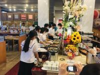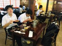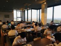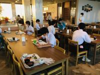 夕食はホテル側と相談の上、スクール形式(一斉に正面を向く)になりましたが、隣席の級友と食レポを交換しながらいただいていました。
