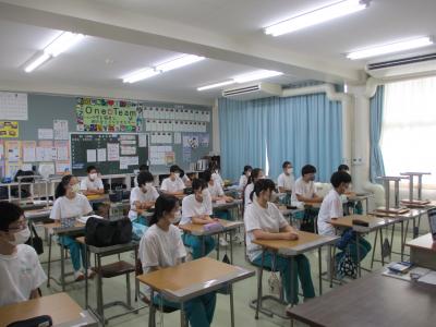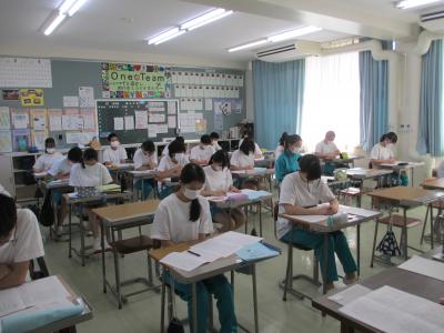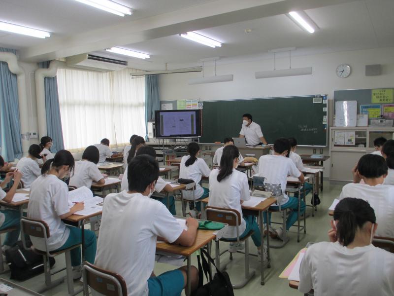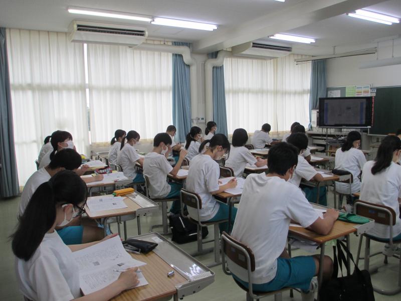 夏休み中の学習も最終日となりました。3年生は以前と比べて、頭をあげて話をする人の表情を見て聴く時間が増えています。貪欲に学ぼうとする姿勢がいいですね。半年後の高校入試に成果として現れるよう2学期への指導につなげていきます。