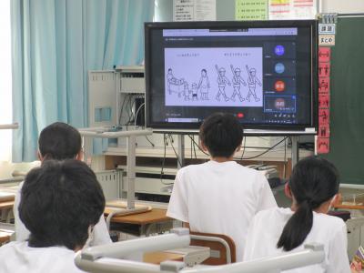 今月23日の「能登町こども議会」での公開質問にむけた打ち合わせをオンラインで行いました。感染症拡大予防のため登校日が取りやめとなったためです。松波中を代表して議場に立つのは、3年生の山本煌大さんと小原千佳さんの2人です。アピールポイントや伝えるための工夫について意見を出し、確認をしていました。