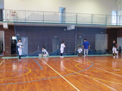 部活動を再開しました。あいにくの雨のため、外で練習予定だった野球部とテニス部は体育館を半分ずつ使用して練習しました。