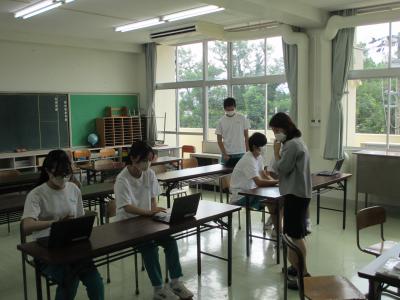 今月23日の「能登町こども議会」での公開質問にむけた打ち合わせをオンラインで行いました。感染症拡大予防のため登校日が取りやめとなったためです。松波中を代表して議場に立つのは、3年生の山本煌大さんと小原千佳さんの2人です。アピールポイントや伝えるための工夫について意見を出し、確認をしていました。