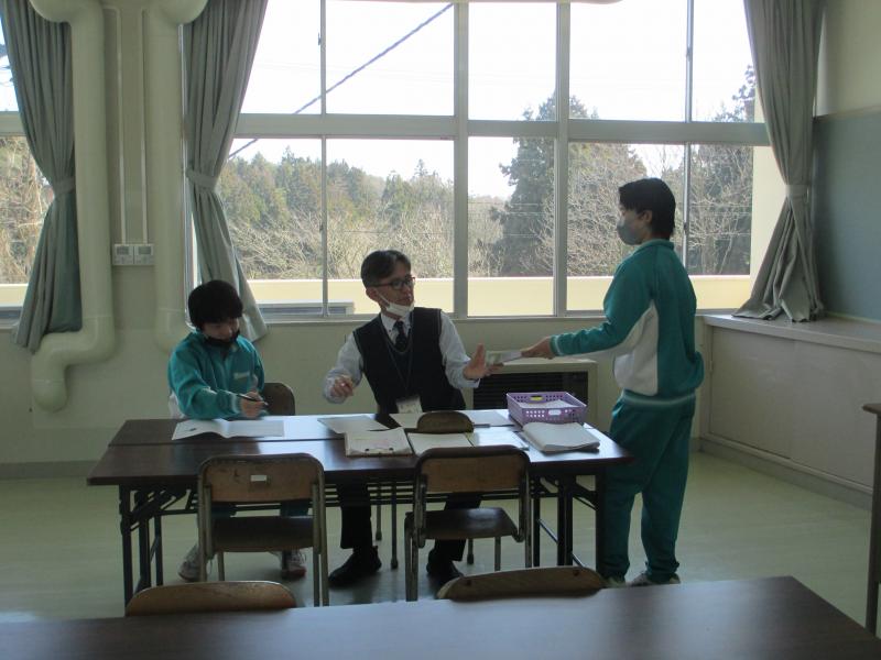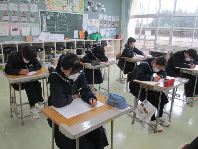 追い込みをかけるばかりではありません。今日は、1・2年生とも学級のお楽しみ会を開いていました。1年生は体を動かすレクリエーションや学校生活クイズを楽しんでいました。2年生はハンディのないレクリエーションにするために、何種類かのカードゲームをチーム対抗で争っていました。転校する友達へのプレゼントや担任からの景品もあったようです。両学年とも、入念な計画を立てて生徒が準備したり進行したりしていました。