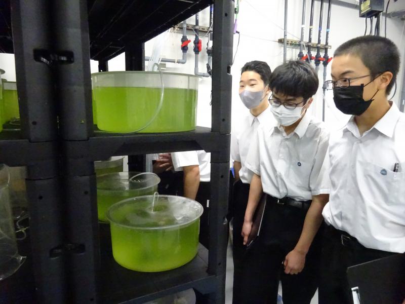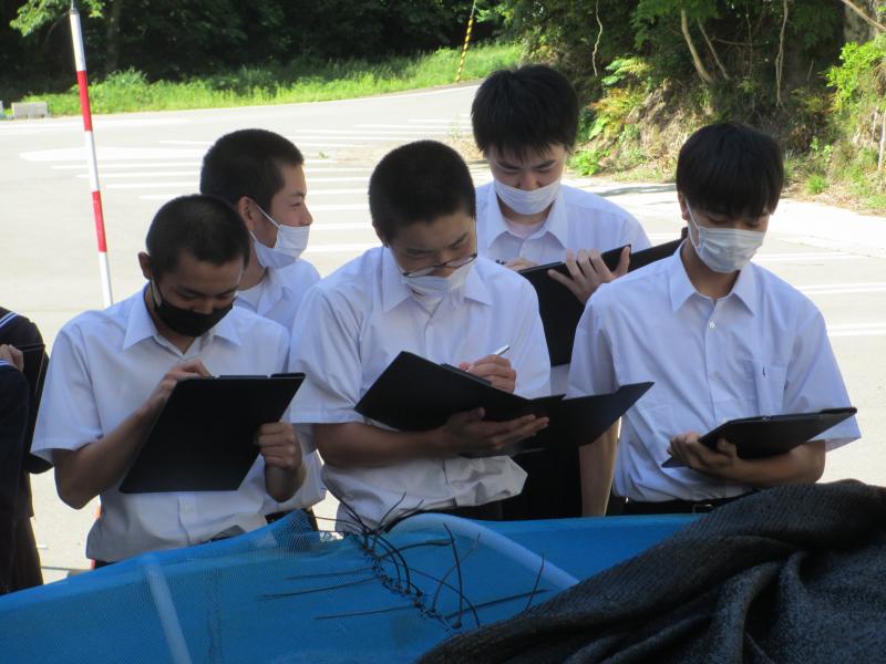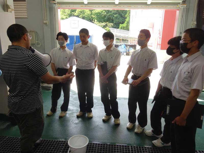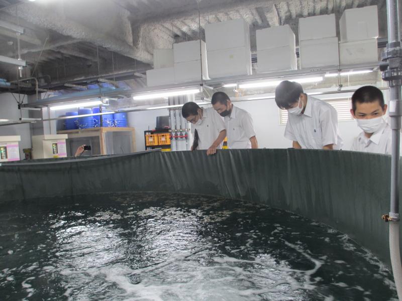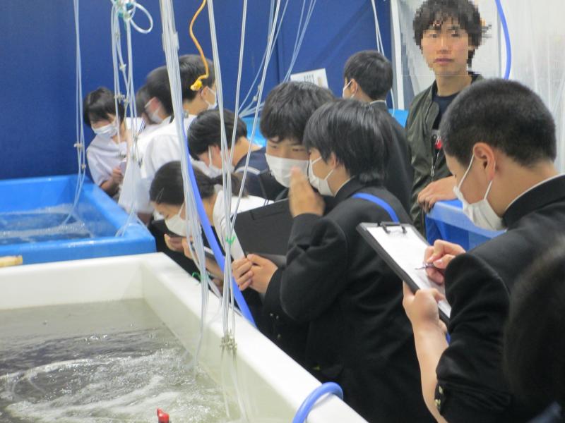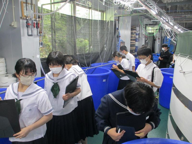 海洋教育の一環として、本日午後に越坂にある金沢大学理工学域能登海洋水産センターの見学に向かいました。