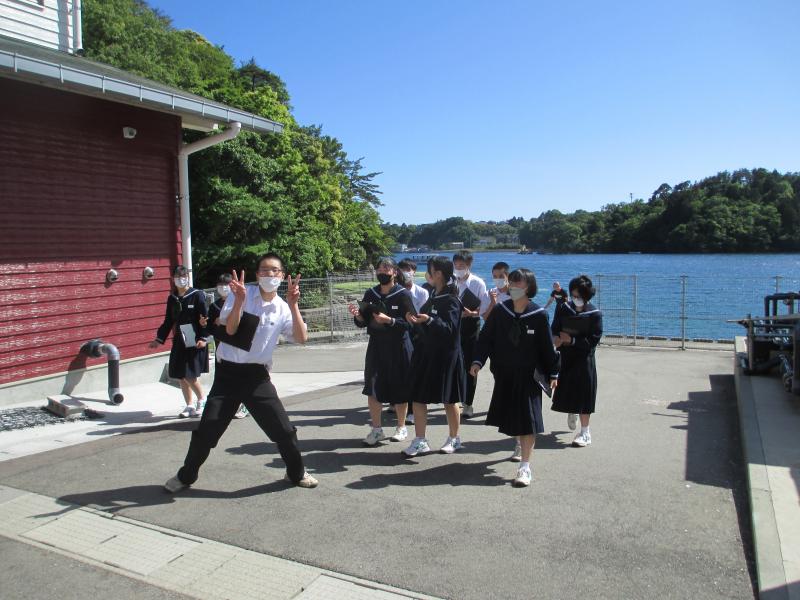 昨日の能登海洋水産センター見学、3年生の様子です。勉強の傍らで、天気にも恵まれ九十九湾の景色にも癒されていたようでした。