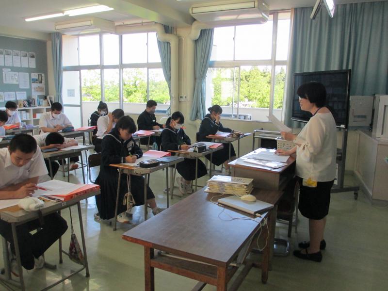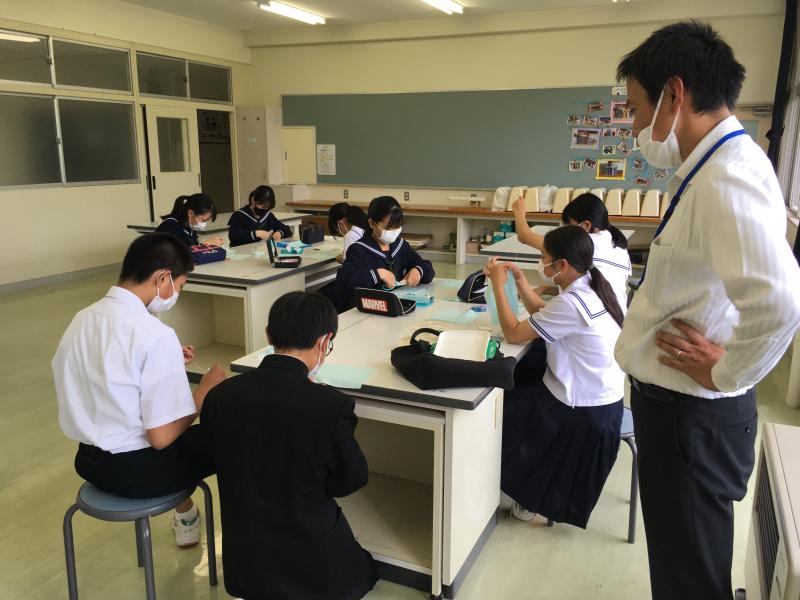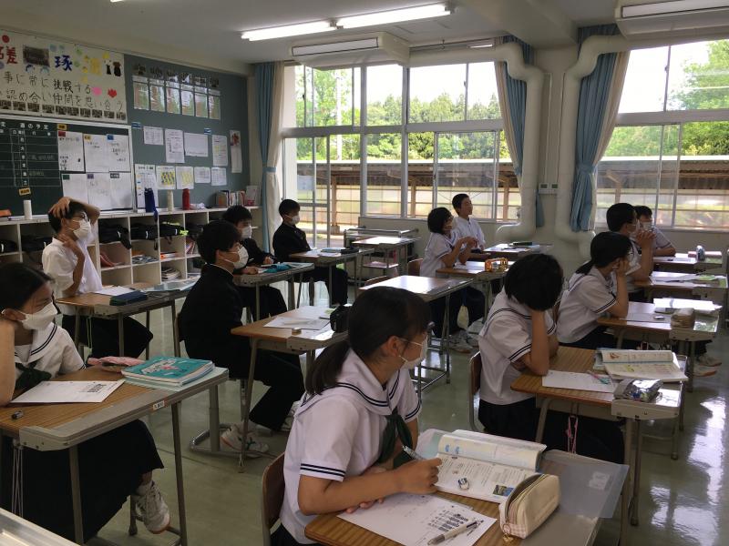 2時間目までに中間テストも終わり、教科の授業が再開しています。本日は和田教諭担当の授業から、2年生の家庭と1年生の数学の授業の様子です。