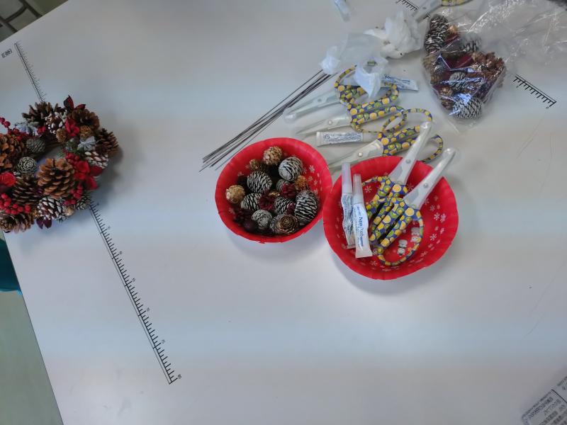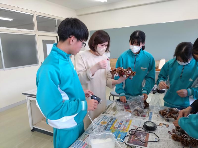 午後の日程で、2年生学年PTAが開催されました。クリスマスや年末年始にむけたリースづくりです。思春期真っただ中の2年生たちですが、おうちの方との共同作業にウキウキしている様子や安心感を得ているような感じを受けました。