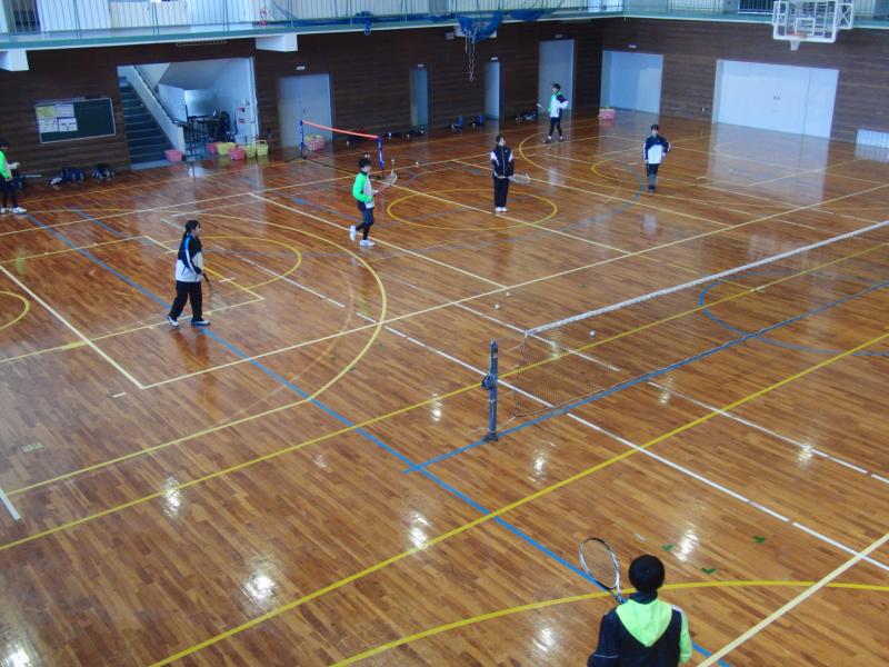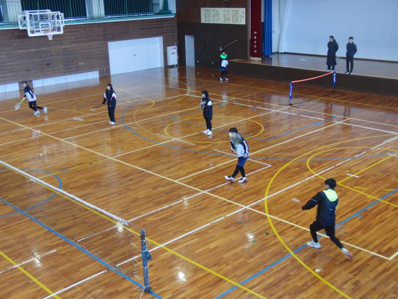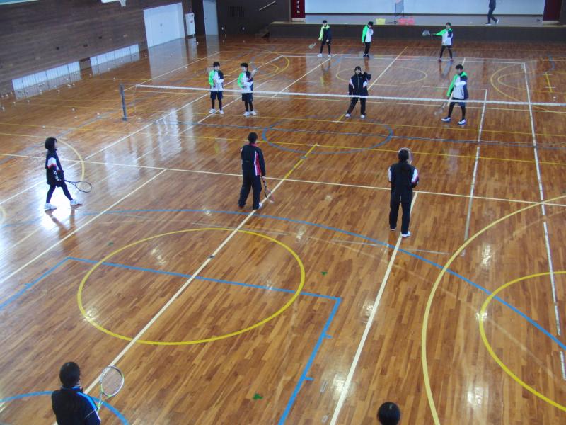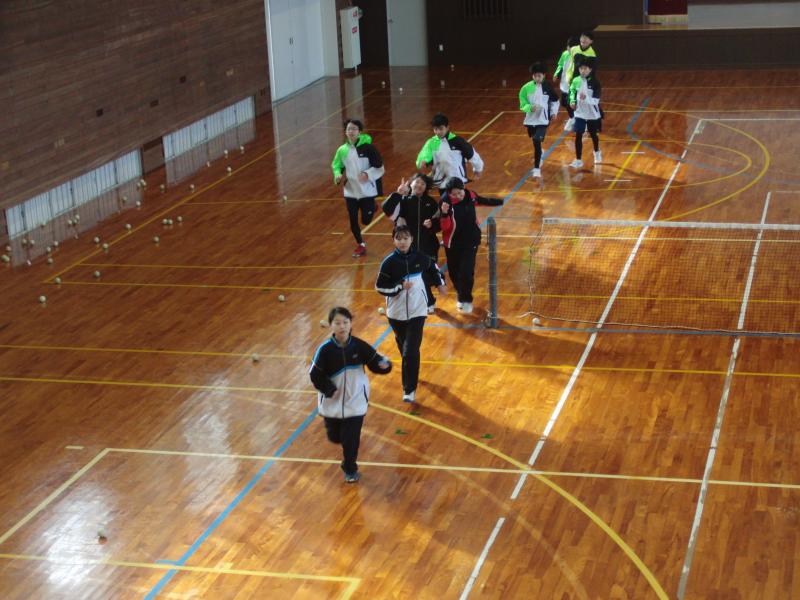 ソフトテニス部は、年明けに県レベルの大会が控えていることから、試合形式練習と基本練習を並行して練習していました。