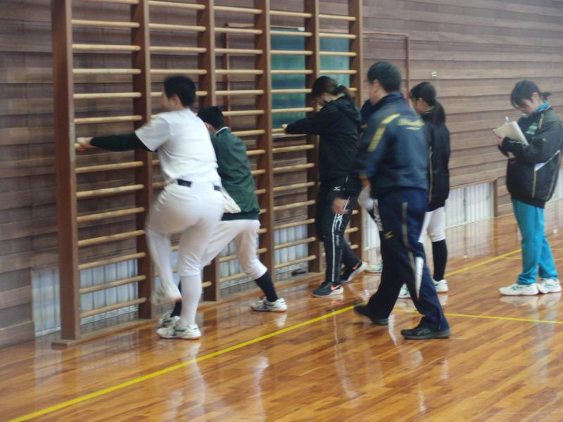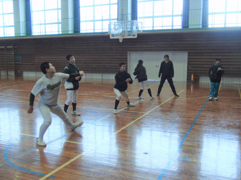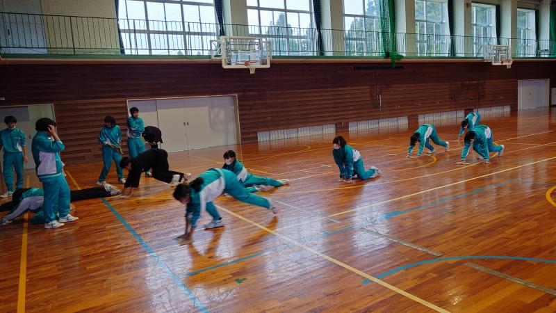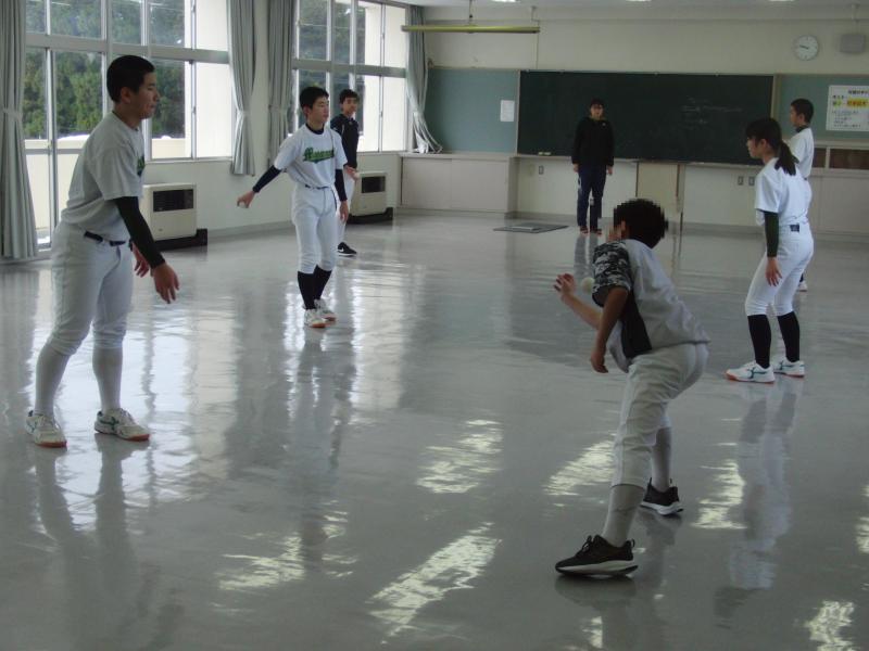 野球部は、基本的な体の使い方・動かし方を筋肉にかかる力を意識しながら正しい動作を習得する練習をしていました。