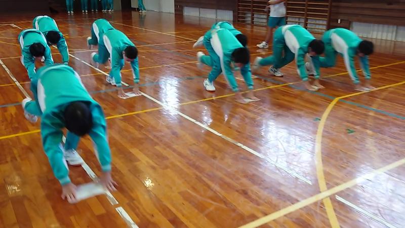 例年、最後の部活動の日に体育館の汚れ落としとワックスがけをするのですが、今年は、2学期12月20日に全学年で行いました。3年生も毎日昼休みに利用していることもあり、一生懸命雑巾がけをしてくれました。写真はその時の様子です。