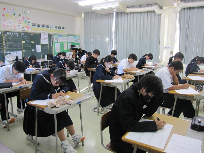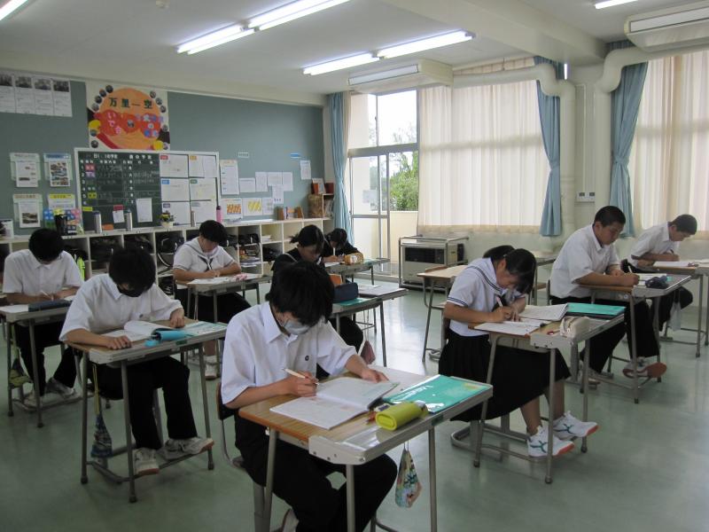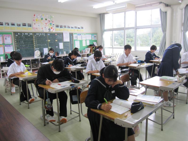 今日から2日間、2学期の中間テストを実施します。計画通り準備勉強できたでしょうか。今朝は、いつもより早く登校して、テストに備える生徒もいました。真剣に50分間取り組んでいました。