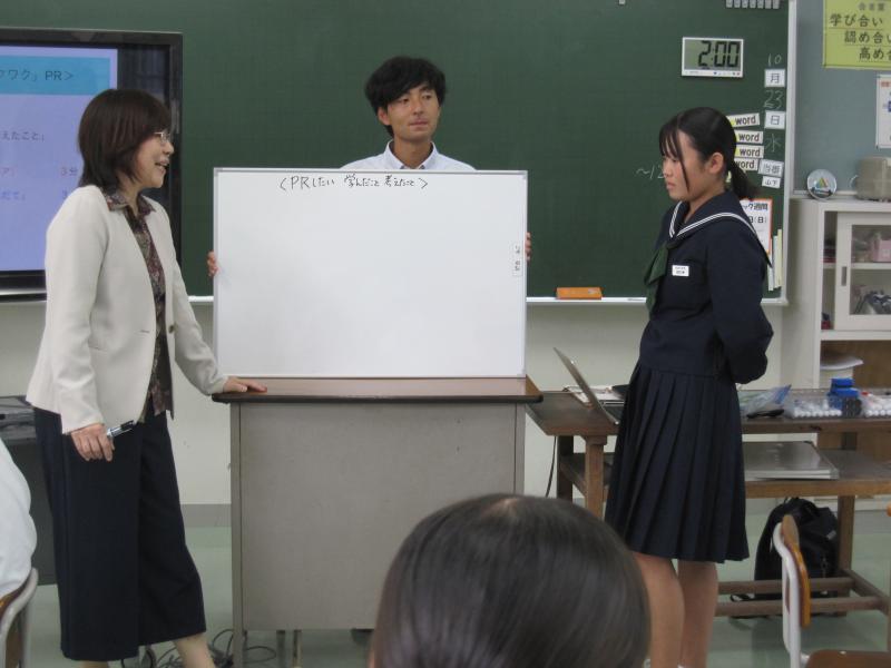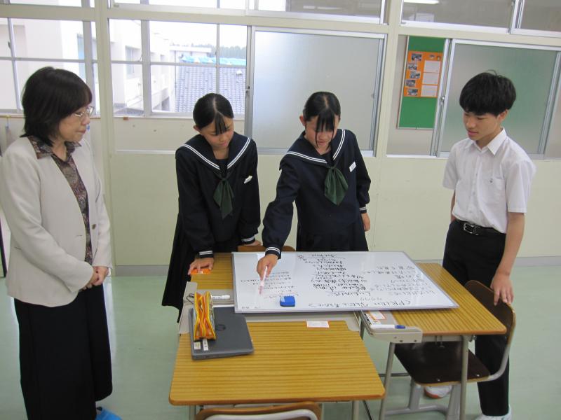 生徒は横山先生の研修を通して、考えて自分の言葉で話す、考えをじっくり聞くそして発信する力を確実に身につけてきているなあと実感しました。横山先生、本当にありがとうございました。