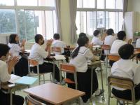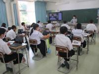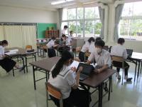 本日は,66名全員がそろっての授業になりました。健康観察では,全員良好ということでしたが,疲れた表情の生徒もいます。声をかけると「(テスト)勉強頑張りました」とか「いつもこんな表情ですよ」といった声が返ってきます。まだ,休み明け2日目です。今しばらくは,いつも以上にお子様の様子を注視していきたいと思います。