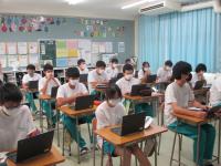 感染症拡大による臨時休業を想定して,リモート授業のリハーサルをしました。生徒は各自の部屋にいる想定でタブレットを使っています。1年生は初めて操作するアプリケーションもあり,戸惑いがちでしたが,挙手や質問チャットに挑戦しました。また,用意したシートのアクセス権限や,ファイルに人数制限がかけられているなど課題も出ましたが,職員が協力して対応し無事終了することができました。また機会を見て,リハーサルに挑戦します。が,まずは休校にならないよう感染症対策を徹底していきます。