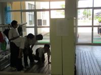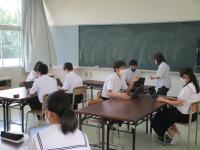 小多目的室では,生徒会執行部と各委員会委員長・副委員長が集まり,体育祭の種目説明会の打ち合わせをしていました。3年男子(受験生!?…一部)は体育館でバスケット,2年生女子(一部)はグラウンドでテニス,1年男子は校舎周りで缶蹴りもどきに興じていました。午後の授業が心配になりましたが,それぞれの学年ともしっかり話を聞いて授業に臨んでいました。
