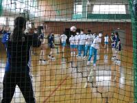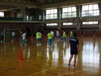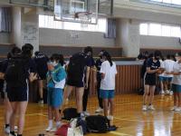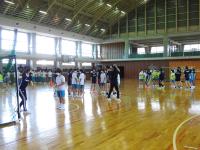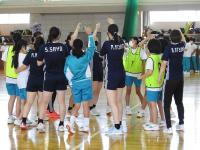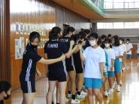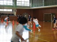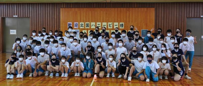 北國銀行ハンドボールチーム『Honey Bee』(以下ハニービー)をお招きして,表記のスポーツ教室を開催しました。ハニービーは現在日本リーグ7連覇中で先の東京オリンピックにも選手を5名輩出した名門です。本日は角南選手,塩田選手のオリンピアンを始めとした17選手と3名のスタッフに,ハンドボール競技のルールからゲームまで教えていただきました。選手の皆さんのアットホームな掛け声と丁寧なご指導で,生徒たちはたちまちハンドボールのとりこになったようです。人気のポジションはゴールキーパーでした!? また,シュートを打つのもなかなかのものでしたよ。トリは3年男子同士のゲーム,本気でした。終了後はちゃっかりサインをもらう生徒も!詳細はお子様からお聞きください。