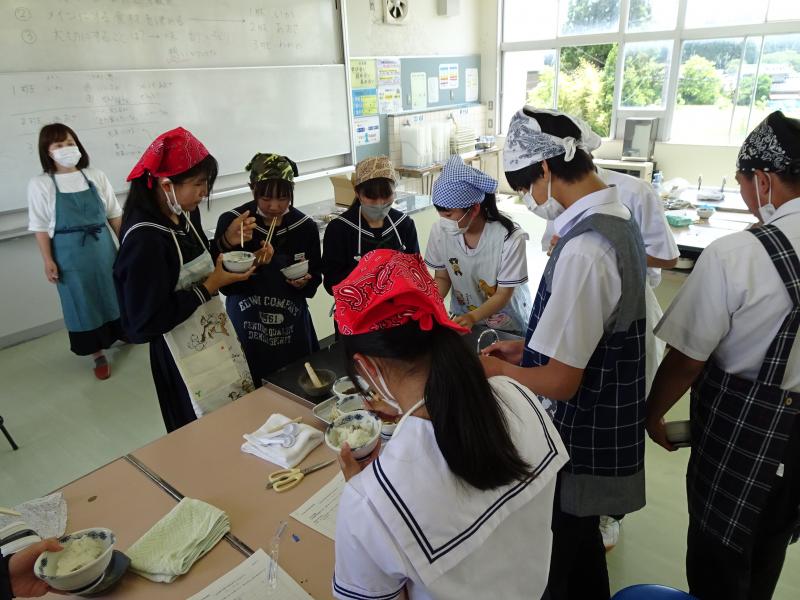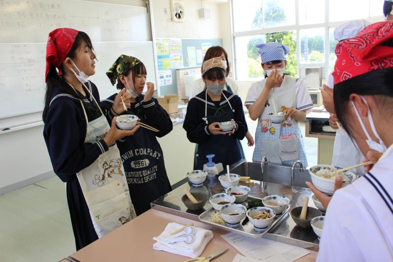 作りながら、調合し味見を繰り返して、それぞれのグループで「のとかけ」が仕上がり、ご飯にかけて試食しました。アイデアを持ち寄って、この後「のとかけ」を完成させていきます。
