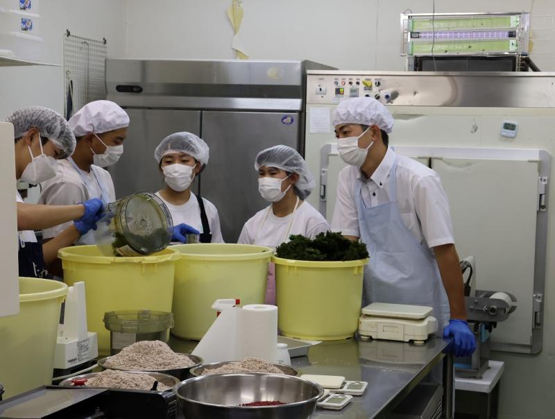 9月25日(木)の午後から、能登町笹川にある「ひらみゆき農園」の加工場で、(有)大脇昆布の大脇さんと能登里海教育研究所の能丸さんのご指導のもと、ふりかけの製造を行いました。