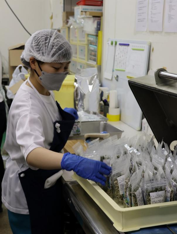 自分たちで考案したレシピを基に、材料を調合し、袋詰めを行いました。