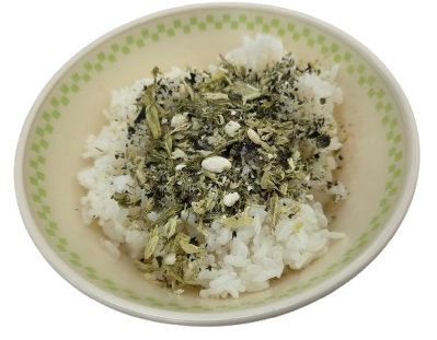 今年は、イカフレーク、アゴだし、アカモクを使ったふりかけになっています。