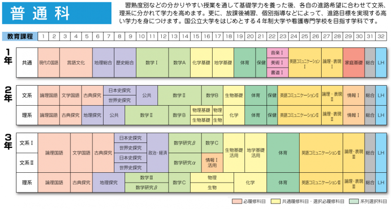 ・普通科は、2年生からは、文系・理系に分かれて勉強をすることが多くなります。