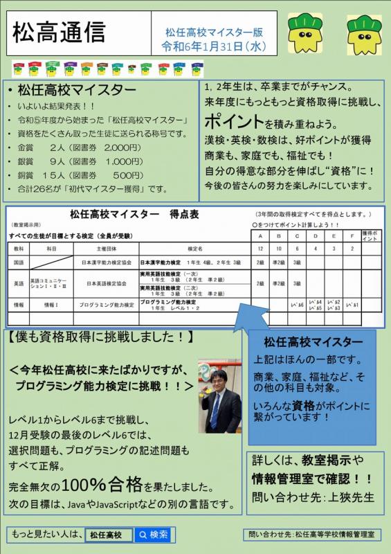 遅くなりましたが、松高通信 情報管理室版ができました。