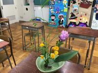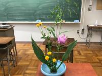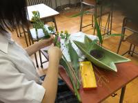 華道部には対外試合はありませんが、新人大会期間中に作品を校内に飾りました。