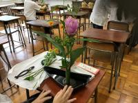 見学に来てくれた1年生も3年生に手伝ってもらい生けてみました