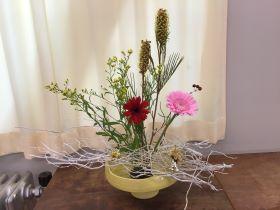 【感想】花器をブロックにしたらとても難しかったです。可愛い花がたくさんで気分が上昇しました!!これからいろんな器で華道を楽しみたいです。(ASA)