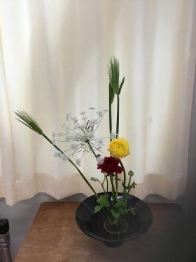 普段のおけいこは自由花(剣山を使って花器に自由なスタイルで花を生ける)ですが、