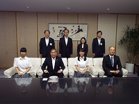 山田白山市長、松井教育長、松田教育部長が同席され、当部の活動に対しての支援への謝辞と東日本学校吹奏楽大会の抱負を申し上げました。また、定期演奏会では心のこもった演奏をして地域の方々に恩返しできるようにと誓いました。