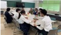 訓練後は、自身の避難行動を振り返りながら、地震が起こった場合の行動や危険な場所、周囲の人のために何ができるかなどについて考える時間を持ちました。生徒からは「固定されていない棚や物がたくさんある場所、ガラスの多い場所に気をつけたい」、「まずは自分の命、一緒に避難する、声掛けしたい」等の意見が出ました。