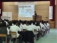 いしかわ教育ウィーク期間中の行事として、本日教育講演会が行われました。「地域とともに考える防災~東日本大震災の経験から~」と題し、金沢大学附属特別支援学校長の中澤宏一先生にご講演をいただきました。今回の講演会は、生徒・教職員だけではなく、保護者・地域のみなさまにも公開し、松任高校で一緒に防災・減災について考えてみたいと企画されたものです。中澤先生がご経験をもとにお話しされた大震災とその後の復興に取り組んだ高校生や教職員、地域の方のお話に、生徒も教職員も心を打たれ、会場一同、静かに聞き入った90分でした。講演後の生徒の感想からは、「中澤先生のお話を聞いて人の思いはどんなに小さくても伝染していくんだなと思いました。高校生が地域を励まして活気が戻っていったことを聞いて、高校生から身近な大人にそして地域に気持ちは通じることが分かりました。私たち松任高校生も中澤先生の体験からたくさんの思いをもらうことができて、本当に貴重な体験になりました。震災以外にもこのことは他人事ではなく自分事として活かしていきたい。」「高校生が周りを笑顔にしようという行動力や言動がとてもすごいなと思いました。震災を経験した後だからこそ、この(宮城県の高校生の)行動は本当に印象に残りました。わたしも見習いたいと思いました。」等の感想もあり、わたしたち一人一人が防災を自分事として考える貴重な機会となりました。