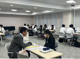 就職教室では、全体で面接での所作について習い、その後はグループに分かれて面接で話す内容の考え方や話す練習を行いました。