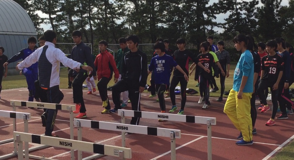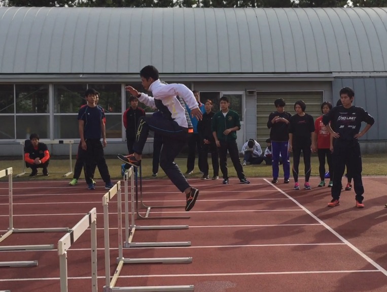 池田君が参加したハードルブロックでは、2016リオオリンピック400mHで準決勝進出を果たした野澤啓佑 選手からの指導をいただき、参加した生徒はたくさんのアドバイスをいただきました。