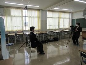 本日は3年4ホームを2つに分け、8教室で朝のショートホームを行いました。養護教諭からの新型コロナウイルス感染防止の注意事項を校内放送で聞いた後、課題や書類を提出しました。3年生は進路用の写真撮影を行いました。廊下で自分の撮影順番を待つ間も言葉少なに、2mのソーシャル・ディスタンスをとっていました。終了後は「Google for Education」の確認を行って放課となりました。