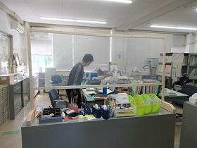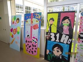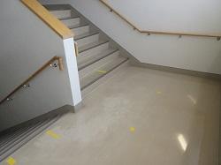 学校の再開に備えて、購買前には混雑解消のためのテープやポール・パーテーションが設置されました。また職員室には、生徒との安全なコミュニケーションをとるため飛沫防止パネルも設置されました。また階段には、右側通行を示すためのテープや矢印のマークが貼られました。生徒のみなさんが登校してもだいじょうぶなように、できる限りの感染防止対策を施しました。