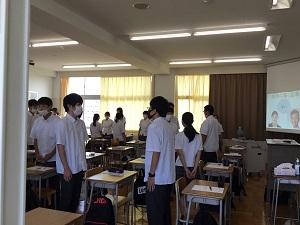 また、最近の県内のコロナウイルス感染者増にも触れて、「今、感染者や濃厚接触者、コロナに関わる医療従事者やその家族に対する偏見や誹謗中傷が問題となっている。戦う相手はコロナであり、人ではない」と生徒に呼びかけました。