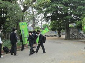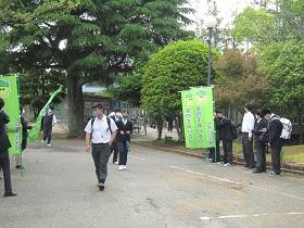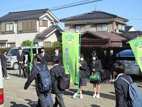 7月15日朝、白山警察署と白山野々市防犯協会の方々が来校し、自転車盗難防止キャンペーンを行いました。正門付近で自転車盗難防止啓発グッズを生徒に配付し、生徒の防犯意識向上を呼び掛けました。最近自転車の盗難が増えているそうです。きちんとカギをかける習慣を身につけておきましょう。