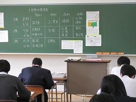 6月28日(月)~7月2日(金)に一学期期末考査があります。今回は、テスト直前の数学の授業の様子を覗いてみました。みんな真剣に問題を解いています。また、放課後には職員室前で質問している生徒が見られました。今週末の家庭学習がとても大切です。一日を有意義に過ごして夏休みを迎えたいものです。