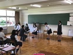 現在、「職業体験学習」に向け、ライフプランやPPTの作成、職場の事前学習等を進めていますが、実践的なコミュニケーション能力や社会人としてのマナーを身に付けるため、「マナー講座」を実施しました。