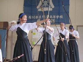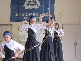 6月18日~20日、石川県立武道館弓道場において第51回北信越高校弓道大会が行われた。女子団体では、あと1本の的中で決勝トーナメント進出を逃した。弓道では1本で喜んだり涙を流す場面は多々ある。今回の大会で選手たちは学校代表として堂々と弓を引き一段と成長し、頼もしくも感じた。応援していただいた方々に感謝します。