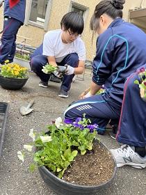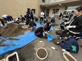 PTA花と緑委員会を中心に、環境委員・JRC部・生徒会など多くの生徒が参加してくれました。